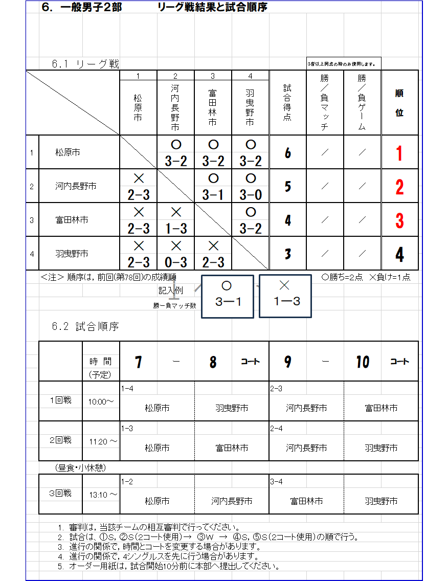 R7第79回大阪府総合体育大会(南河内地区大会)卓球競技の部詳細