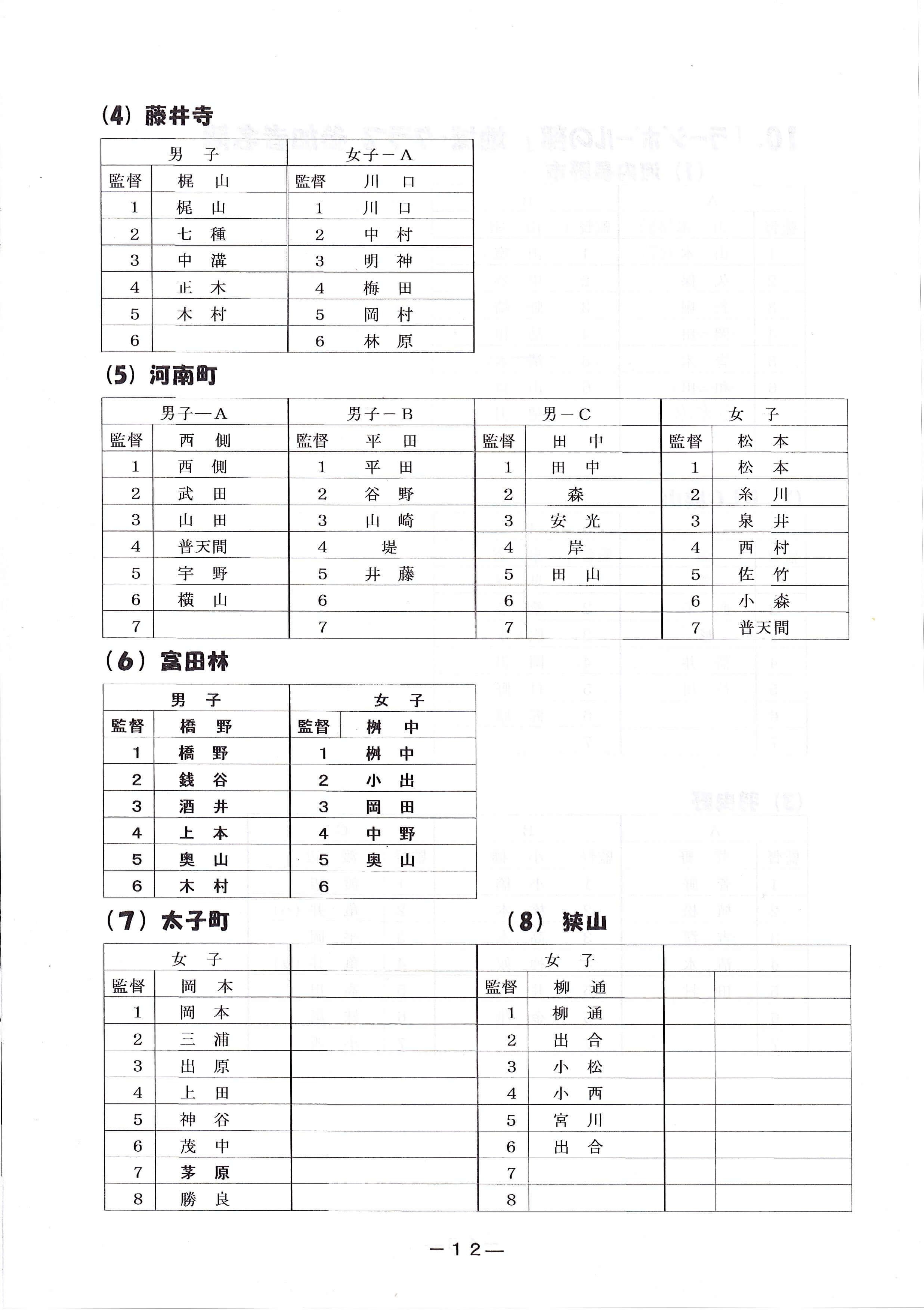 R8年度河内長野市卓球連盟年間スケジュール