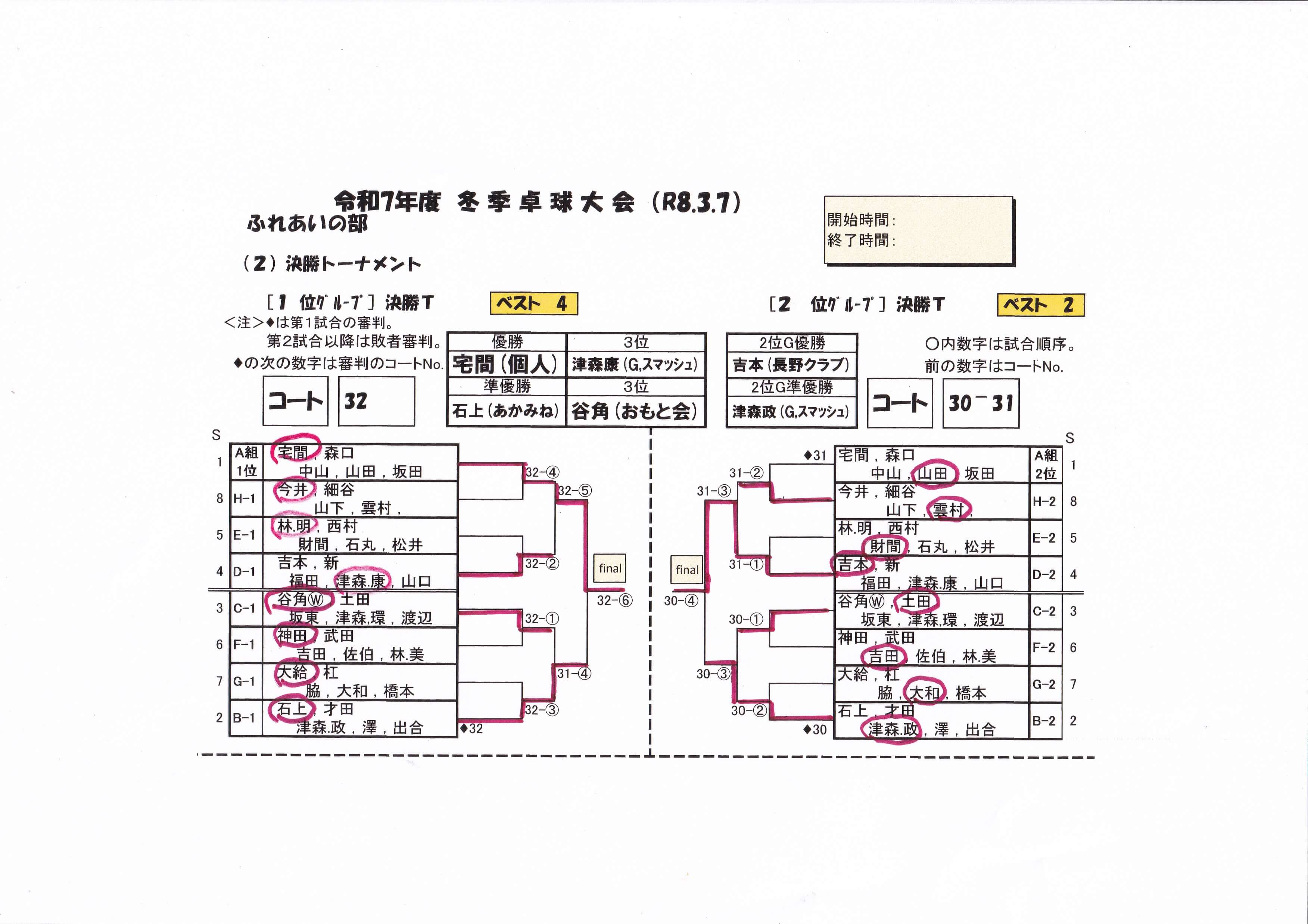 R7年度冬季卓球大会の詳細