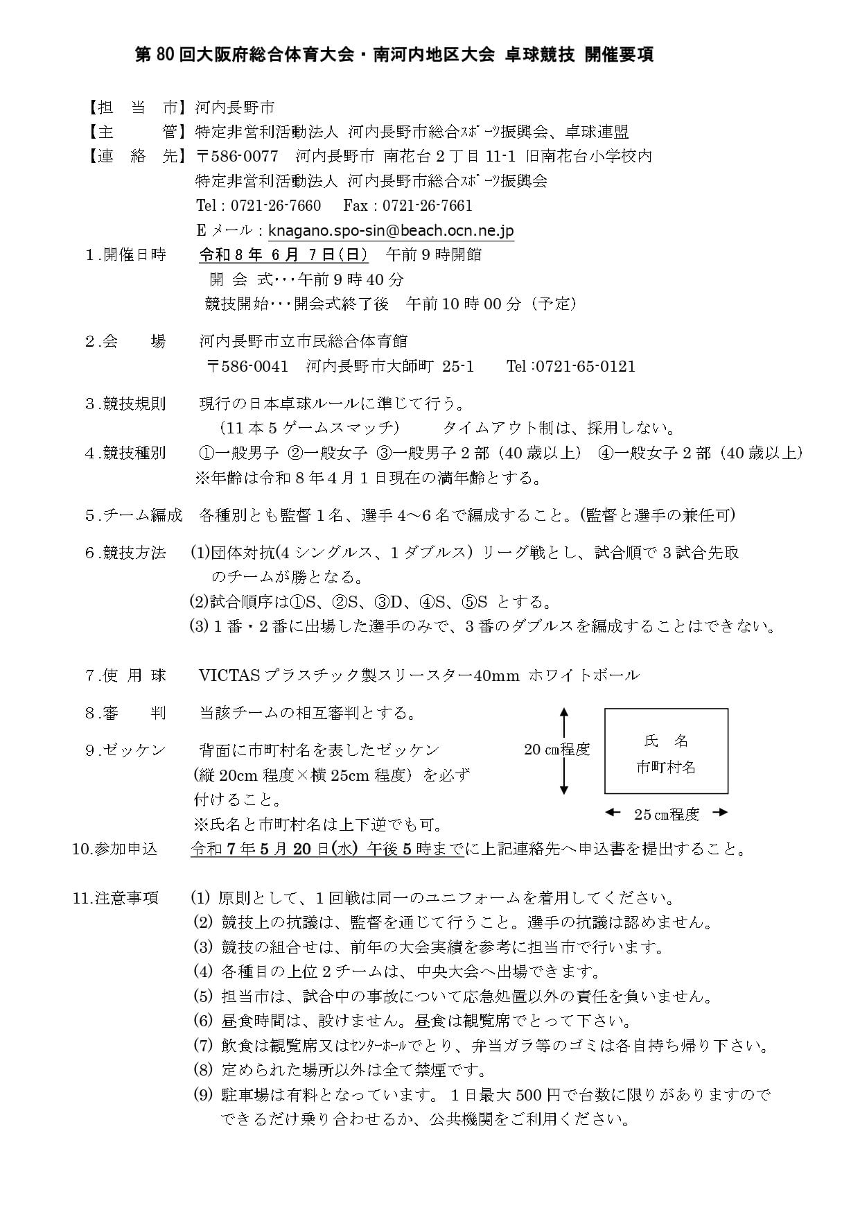 R8第80回大阪府総体・南河内地区大会卓球の部開催要項