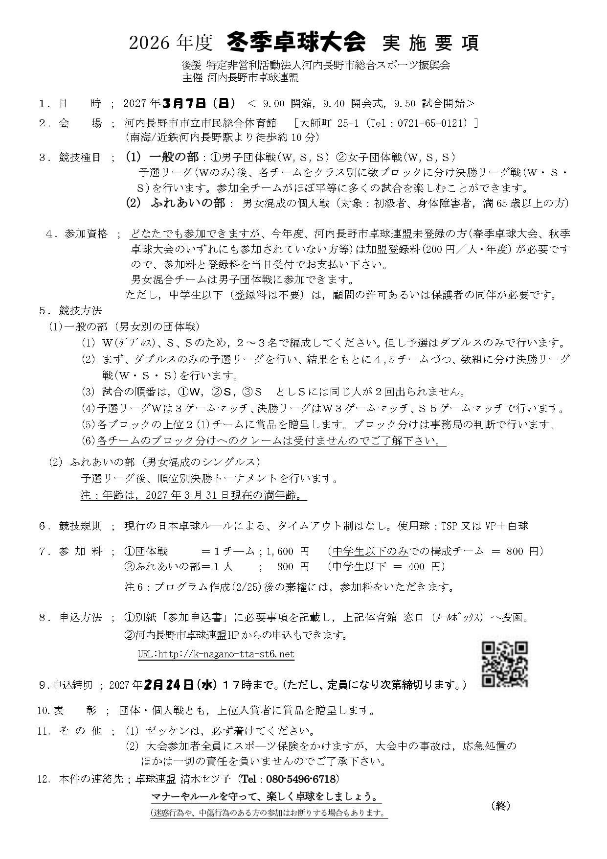 河内長野市卓球連盟since1969/4(HP Ver.2026 (HP2017/1開設)
